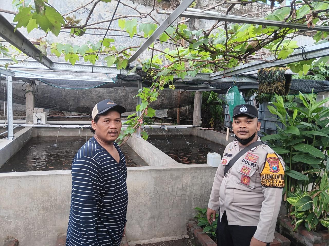 Polresta Sidoarjo - Dalam upaya mendukung program ketahanan pangan di wilayah Desa Ketajen, Bhabinkamtibmas Desa Ketajen Bripka K. Rossidin melaksanakan kegiatan sambang dan monitoring ke peternakan ikan nila merah yang dikelola oleh warga setempat.
