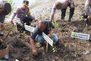 Rayakan HUT Korps Brimob dan Polairud, Polresta Sidoarjo Tanam Mangrove