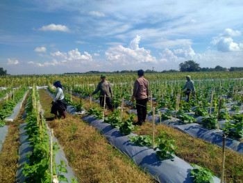 Program P2B Dapat Dukungan Polisi, Kanit Binmas Prambon Cek Lahan Melon Warga